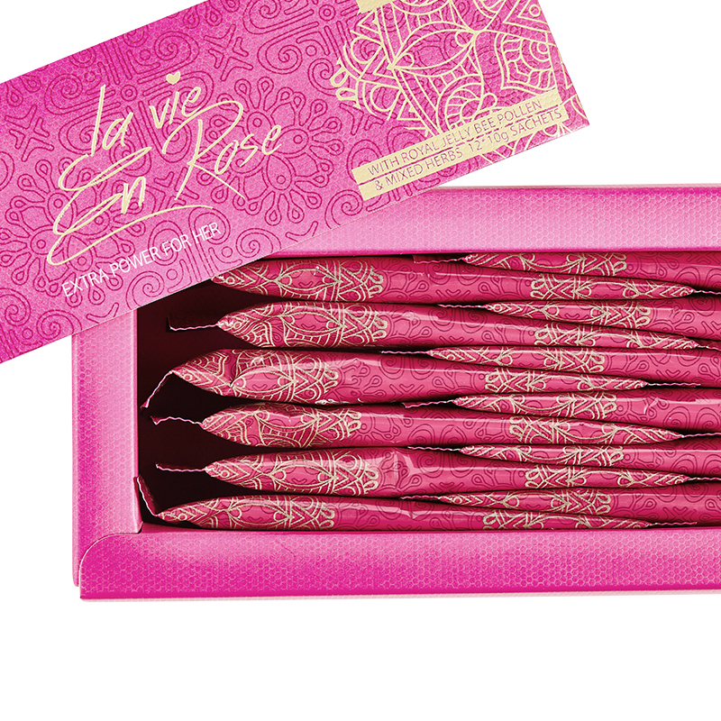 Indulge in the luxurious essence of La Vie en Rose – For Her 12 Sachets. This premium blend, designed exclusively for women, enhances intimate moments with a mix of pure honey, royal jelly, bee pollen, and unique herbs. Elevate your experiences with this exquisite product crafted to harmonize hormones and boost physical performance.